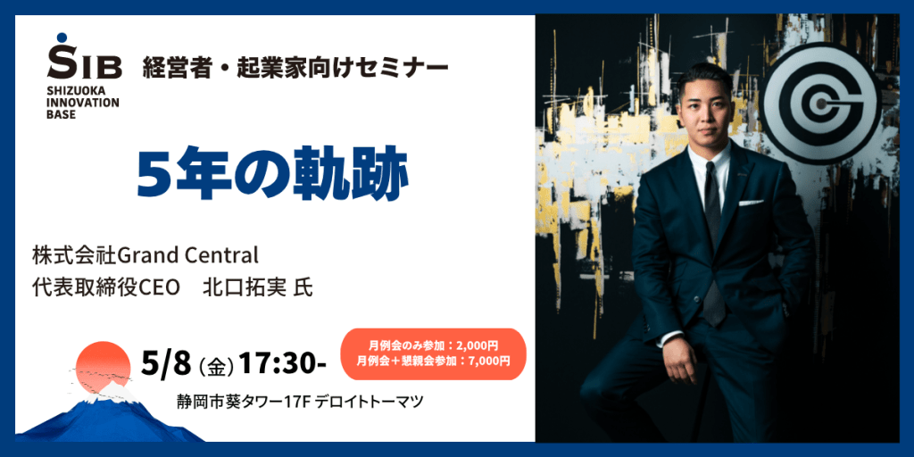 - 【2026年5月8日(金)月例会】株式会社Grand Central 北口 拓実 氏「5年の軌跡」