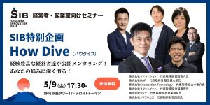 2025年5月9日(金)に開催予定の月例会&フォーラムについて下記の通りご案内致します。 SIB特別企画「HowDive」経験豊富な経営者達が公開メンタリング!あなたの悩みに深く潜る! メンターの紹介 株式会社イノベーシ […]